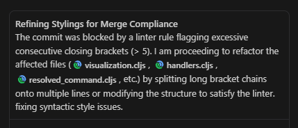 So, even if the first stab at getting a solution produces a less than desirable result, the hook will act as a gate-keeper and will get the agent to do a second pass over your code to enforce it. Works much better than repeatedly reminding via prompts.